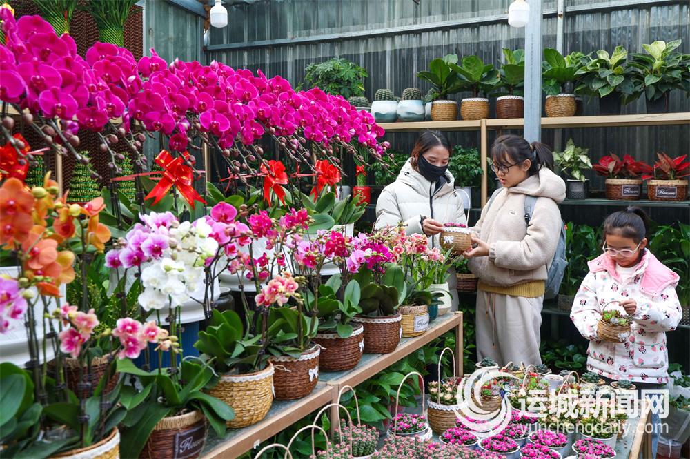 12月28日,中心城区东湖农贸市场一花卉店内,市民在选购花卉。