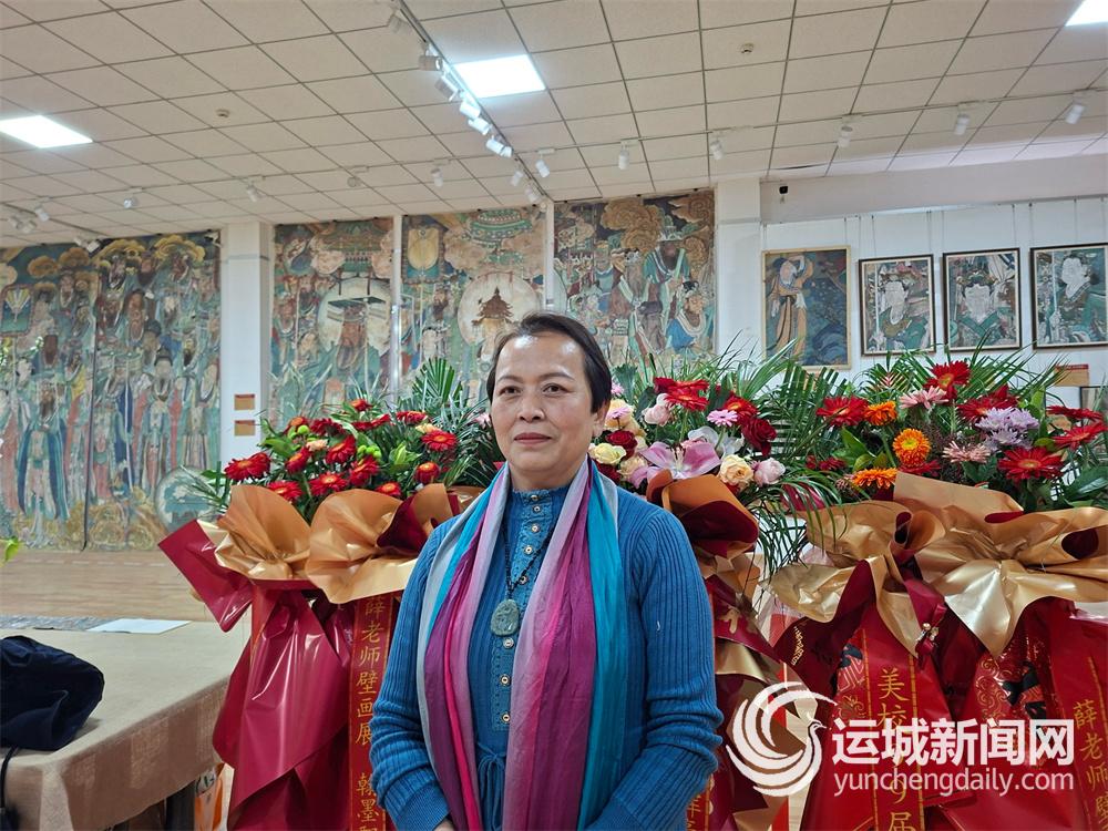 12月22日,一场特殊的大型壁画展览在运城市文化馆开幕,将人们的目光带到了一位女画家身边。她便是这场“生命为笔 艺术为墨”壁画艺术展的作者、策展者与执行者、永济市非遗泥皮壁画艺术第四代非遗传承人——薛涛。