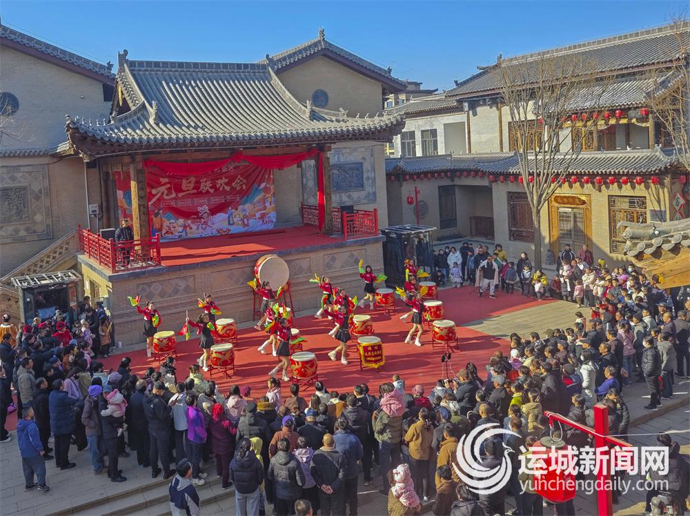 1月11日,游人在万荣县锦里古街争相观看精彩的青春鼓舞表演。