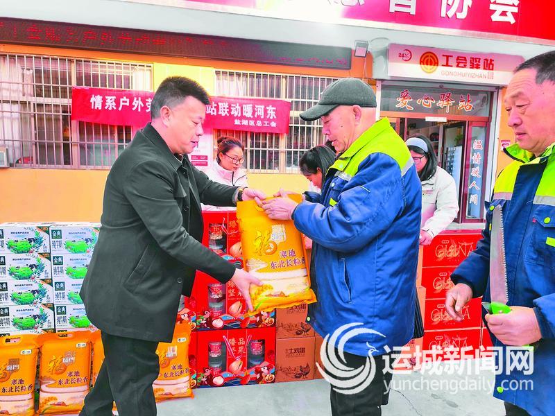 运城晚报讯(记者 陶登肖)冬风送寒,关爱同行。1月15日,在全国总工会设立的“工会服务户外劳动者日”当天,盐湖区总工会联合运城市爱心驿站社会工作服务中心、盐湖区志愿者协会开展慰问活动。一份份满载心意的慰问品、一句句饱含深情的问候,将党和政府的关怀与工会“娘家人”的温暖,精准传递给环卫工人、快递员、外卖骑手等户外劳动者群体,让寒冬中的城市守护者们倍感暖意。