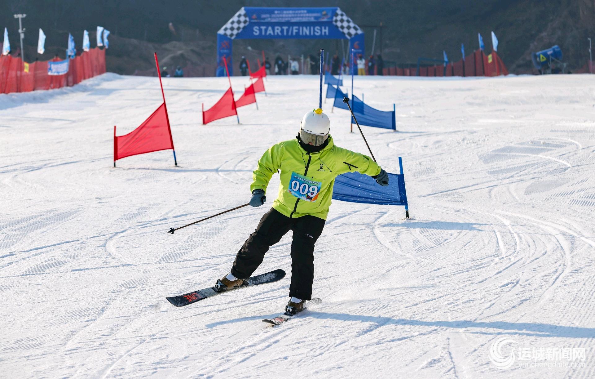 1月17日,运城市大众冰雪季启动仪式暨全民健身滑雪比赛在永济五老峰国际滑雪场举行。我市百余名滑雪爱好者分组进行了男女单双板等项目的比拼,生动展现了冰雪运动的力量与美感。