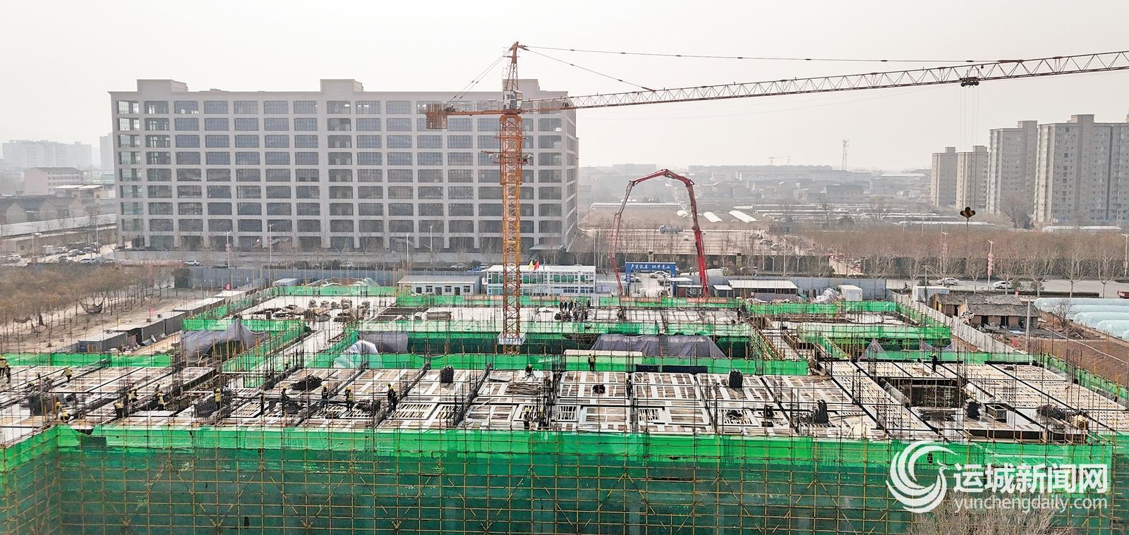 1月17日,夏县第二幼儿园新建项目施工现场,建设者利用晴好天气抓紧施工,全力冲刺春节前既定建设目标。