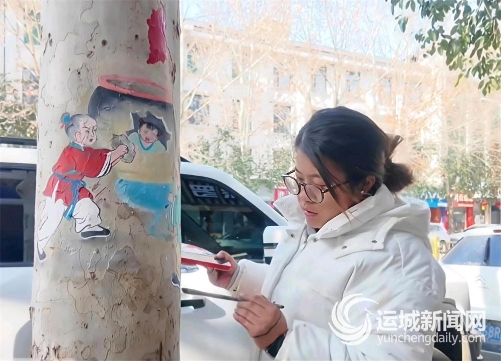 运城晚报讯(记者 杨洋)1月12日,夏县新建北路的街边法桐树洞内,一幅生动的司马光砸缸彩绘吸引行人纷纷驻足。公益美术师以树洞为天然画布,让历史故事与街头艺术相融,为司马光故里添注文旅新活力。