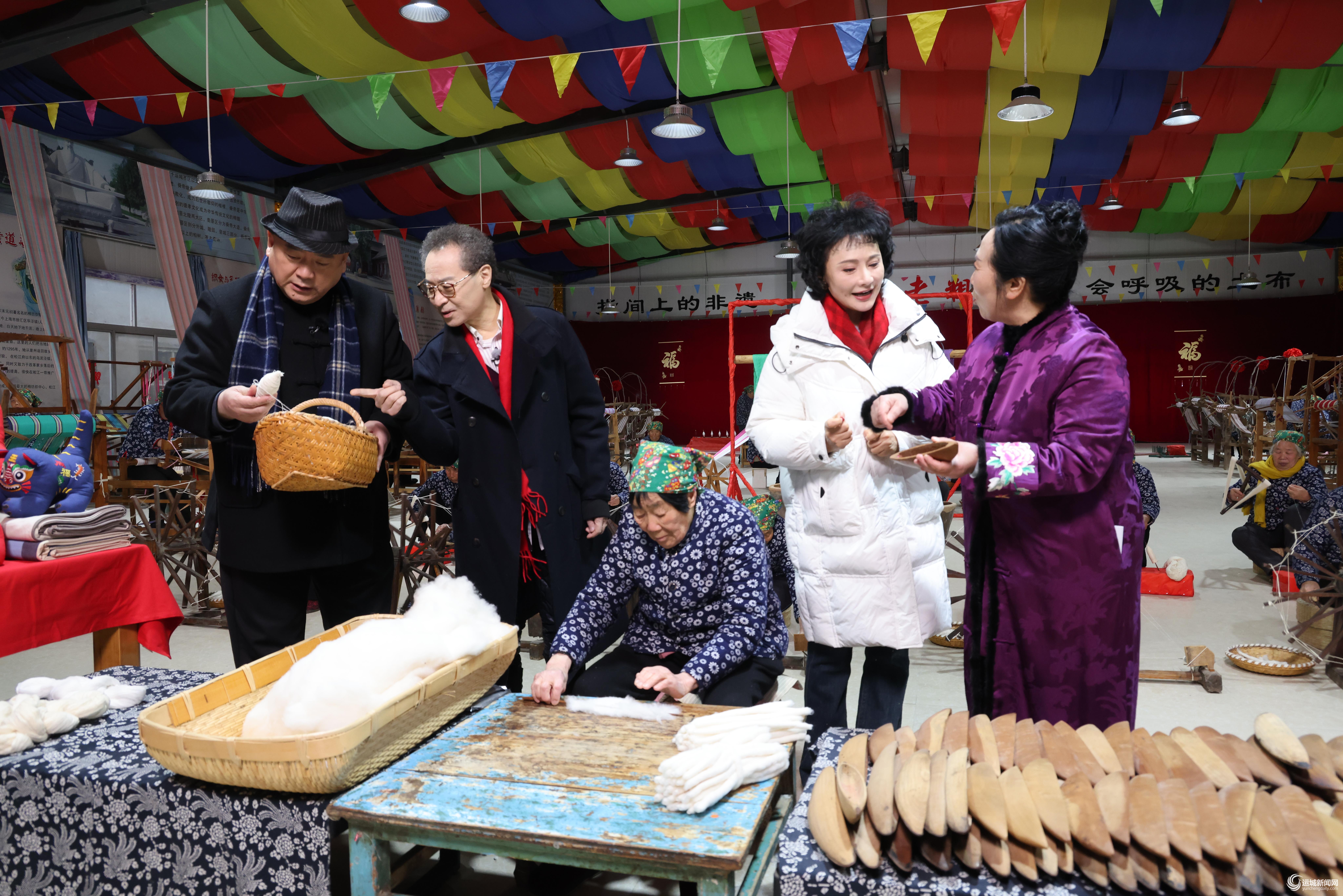 1月19日,央视戏曲频道新春特辑《鹳雀楼上·梨园情深》在永济市开张镇惠畅粗布文化旅游产业园正式开启录制,戏曲名家齐聚“指尖非遗”工坊,以丝竹之韵碰撞经纬之美,为全国观众打造一场兼具传统文化厚度与新春暖意的文化盛宴。图为节目录制现场。