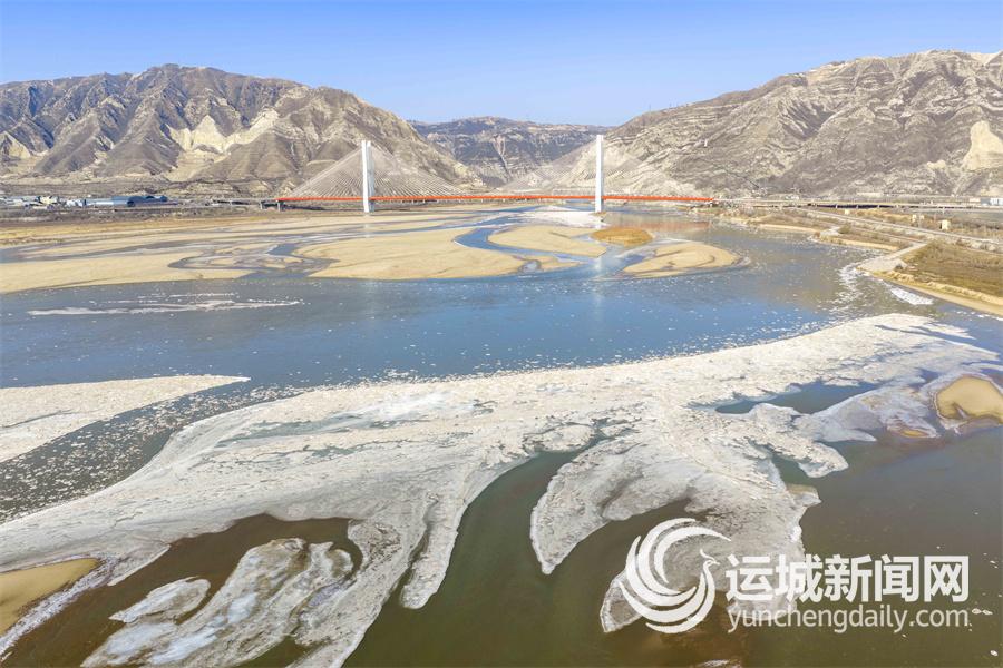 受低温天气影响,黄河河津段宽阔的河道中出现流凌景观,与周围环境相互映衬,构成一幅冰水交融的冬日壮景。 记者 茹雅 摄