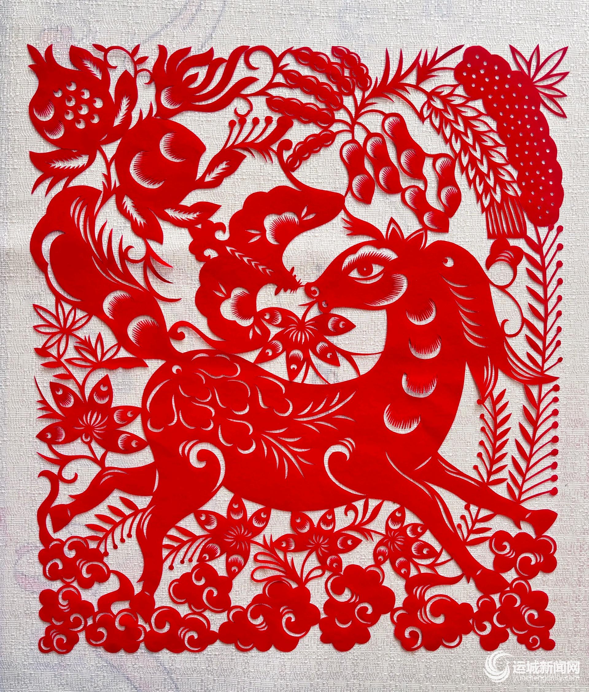 这幅《跃马迎春》剪纸以奔马为核心元素,骏马昂首扬蹄、身姿矫健,线条流畅利落,鬃毛灵动飘逸,将马的昂扬气势刻画得惟妙惟肖。整体构图疏密有致,吉祥元素与奔马相映成趣,既烘托出新春的喜庆氛围,又暗合马年龙马精神的美好寓意,以鲜活的造型传递出辞旧迎新、策马向前的新春期许。