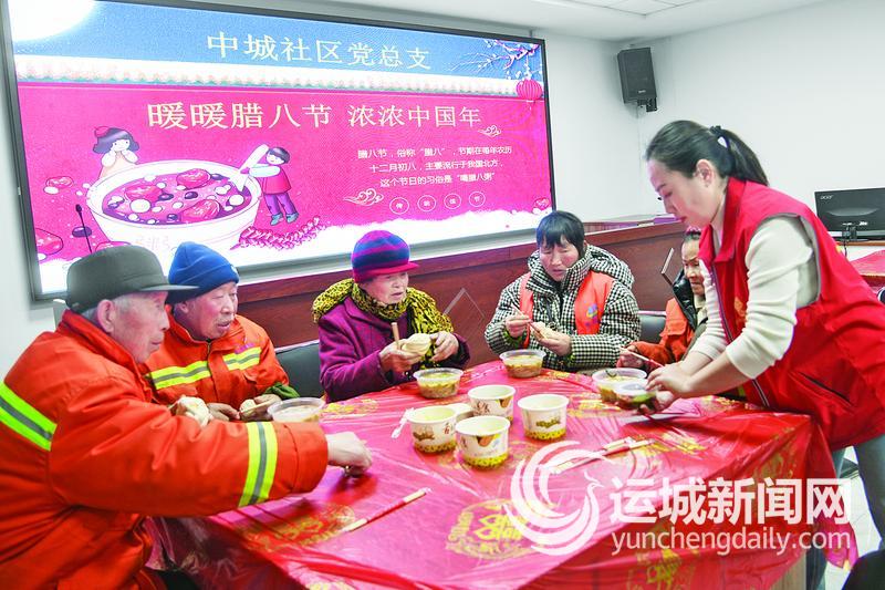 1月26日,闻喜县中城社区开展“暖暖腊八节 浓浓中国年”主题活动,邀请辖区环卫工人、孤寡老人等欢聚一堂,品腊八粥、话邻里情、忆民俗韵,让这个寒冬充满浓浓的暖意与温情。