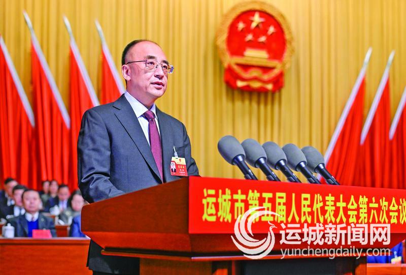 1月14日,在运城市第五届人民代表大会第六次会议上,姚逊作政府工作报告。记者 常 奇 摄