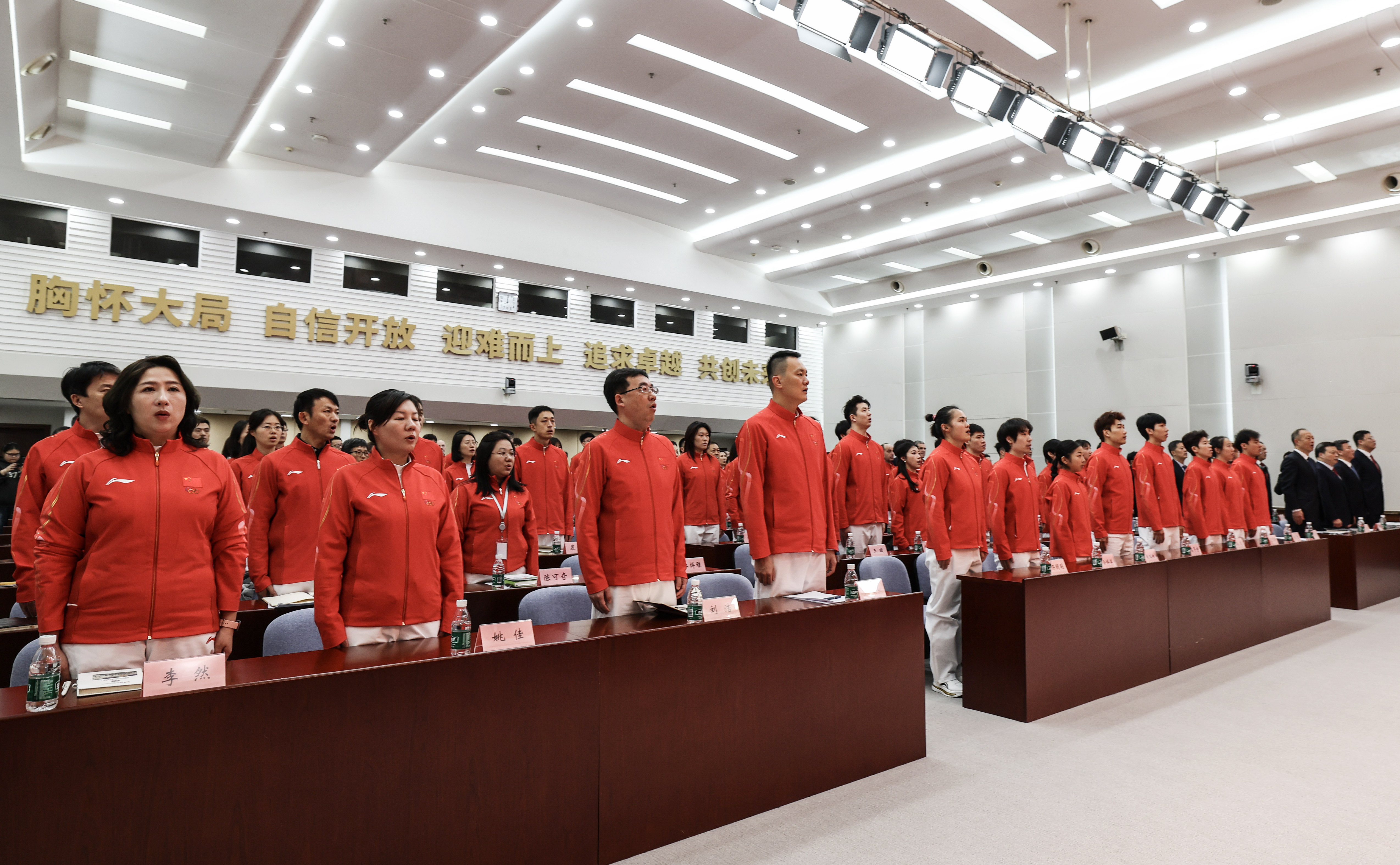 这是1月27日拍摄的成立动员大会现场。1月27日,米兰冬奥会中国体育代表团成立动员大会在北京召开。