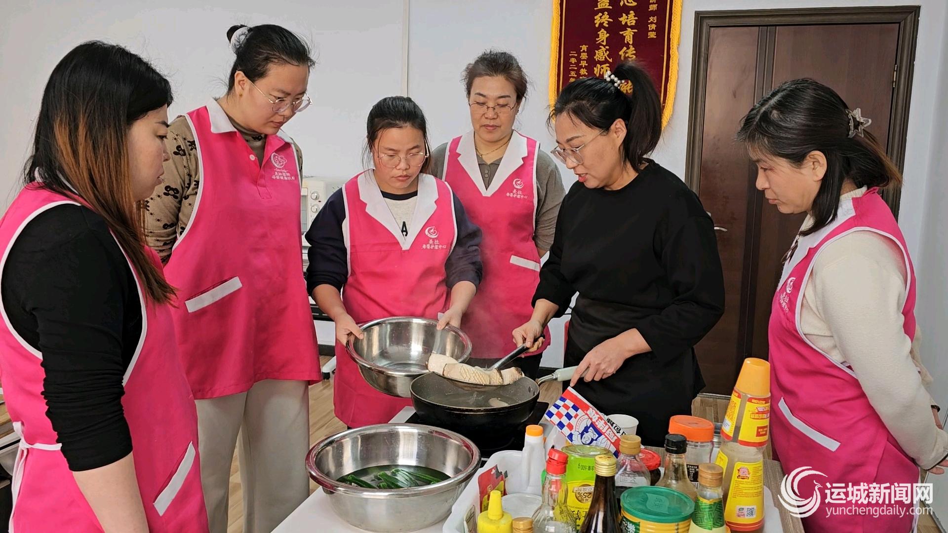 1月28日,学员在专业老师指导下进行家政技能培训,学习制作高级港式营养餐。