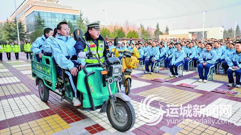 寒假临近,学生外出活动增多,交通安全如何先行一步?1月28日,运城市公安局交通管理支队联合万荣县公安局交通管理大队走进万荣县实验中学,围绕“文明出行、安全回家”主题,为在校师生开展交通安全宣传活动。民辅警通过知识普及、互动问答等方式,把交通法规带到学生身边、把安全意识送进学生心里,为即将到来的寒假出行筑牢安全防线。