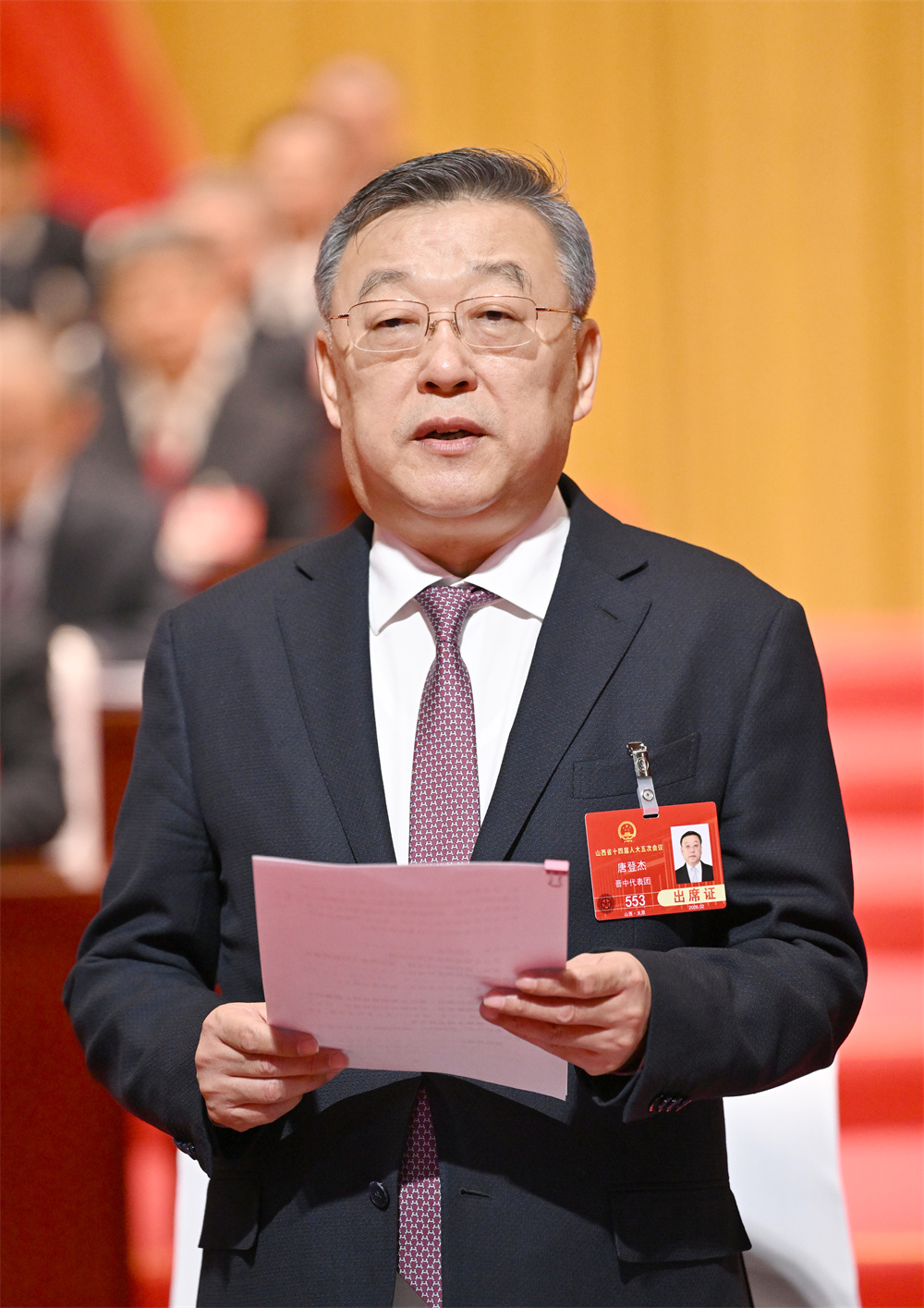 上午9时,唐登杰宣布:山西省第十四届人民代表大会第五次会议开幕。会场全体起立,奏唱国歌。