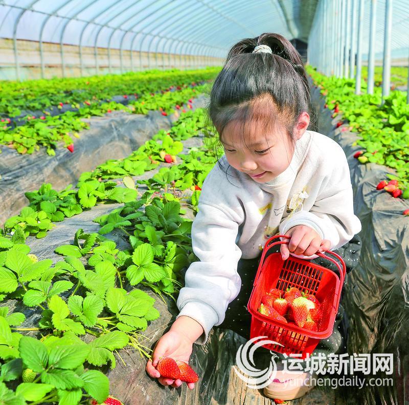 2月11日,夏县尉郭乡白张村草莓大棚里,小朋友在采摘草莓。寒假期间,不少家长带着孩子体验采摘乐趣,畅享假日美好时光。特约摄影 张秀峰 摄