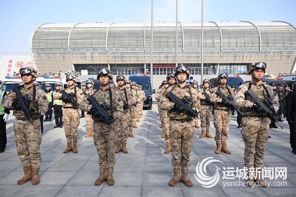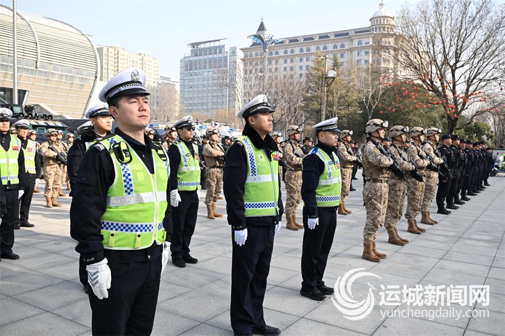 仪式现场,由市公安局巡特警支队、武警运城支队、市公安局交管支队及盐湖公安分局巡特警组成的联勤方阵士气高昂、精神抖擞、整装待发。