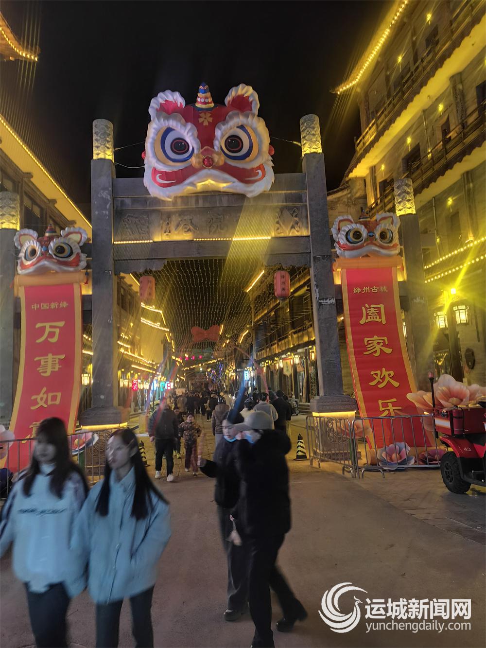 灯笼成串,如星河坠地,从广场一直铺向古巷深处。飞檐翘角在灯火中温婉如画,青石板路被照得暖红,贡院街的楹联在夜色里静静伫立,《弟子规》的字句,与满城烟火相融,让热闹中多了一分文韵的沉静。风里有年味,有墨香,有鼓韵,更有刻在绛州人骨子里的敦厚与热忱。