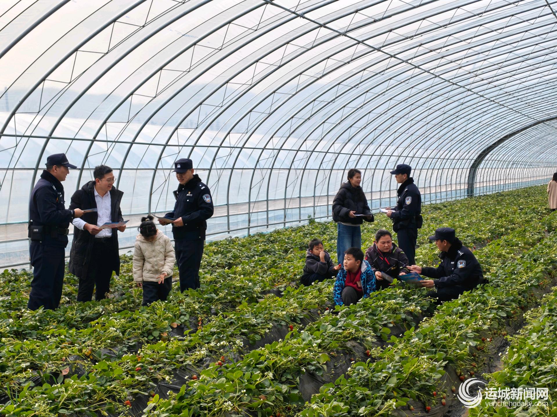 2月18日,平陆县公安局张村派出所民辅警到辖区草莓采摘园,宣传讲解防火、防盗、防诈骗相关知识。荆 飞 摄