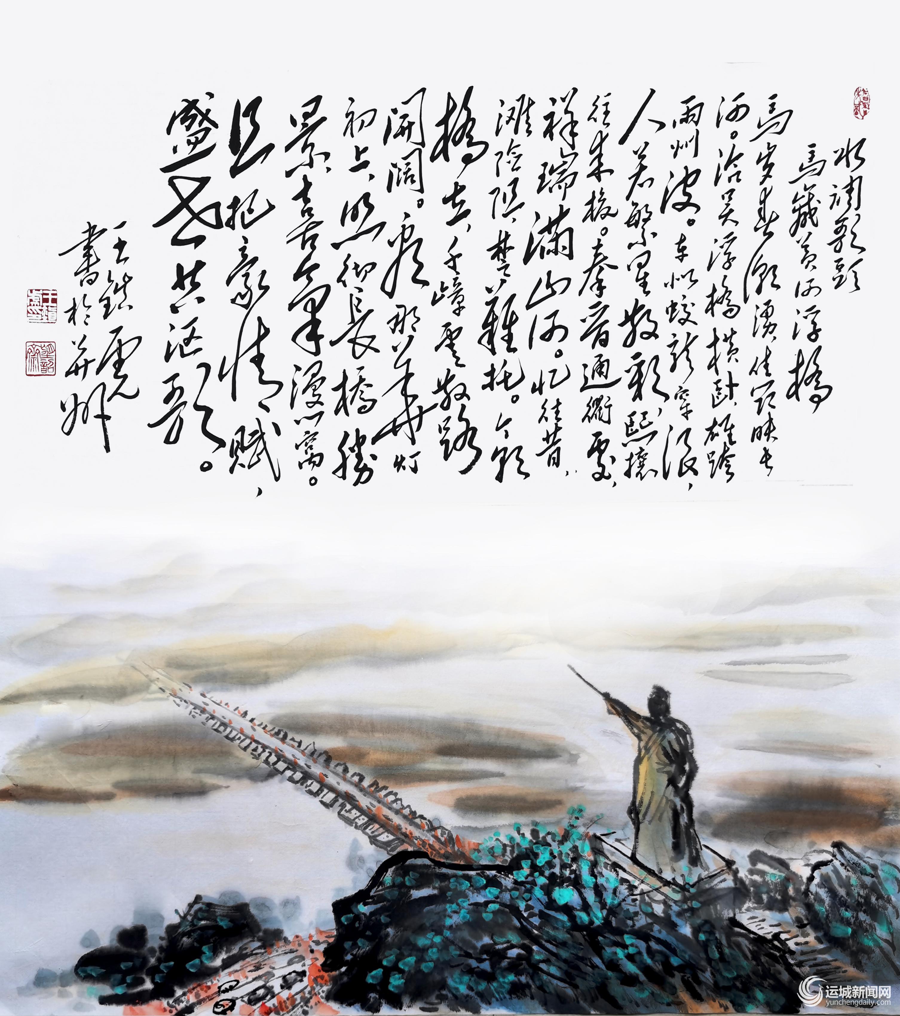 水调歌头·马岁黄河浮桥(词配画) 王振虎 作