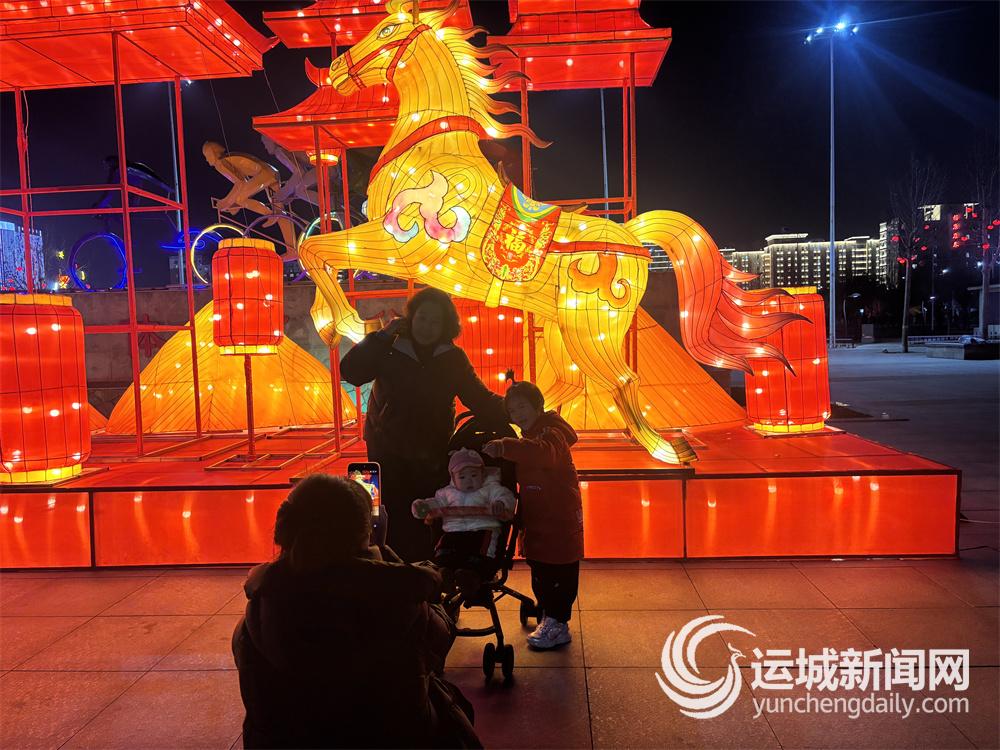 “妈妈,我还要再拍一张!”南广场中央,小朋友拉着家长的手,在威风凛凛的马年主题灯组前摆好姿势,等待定格美好瞬间。这组矗立在广场正中央的生肖造型灯,成为当晚最热门的打卡点,吸引许多市民驻足观赏、合影留念。