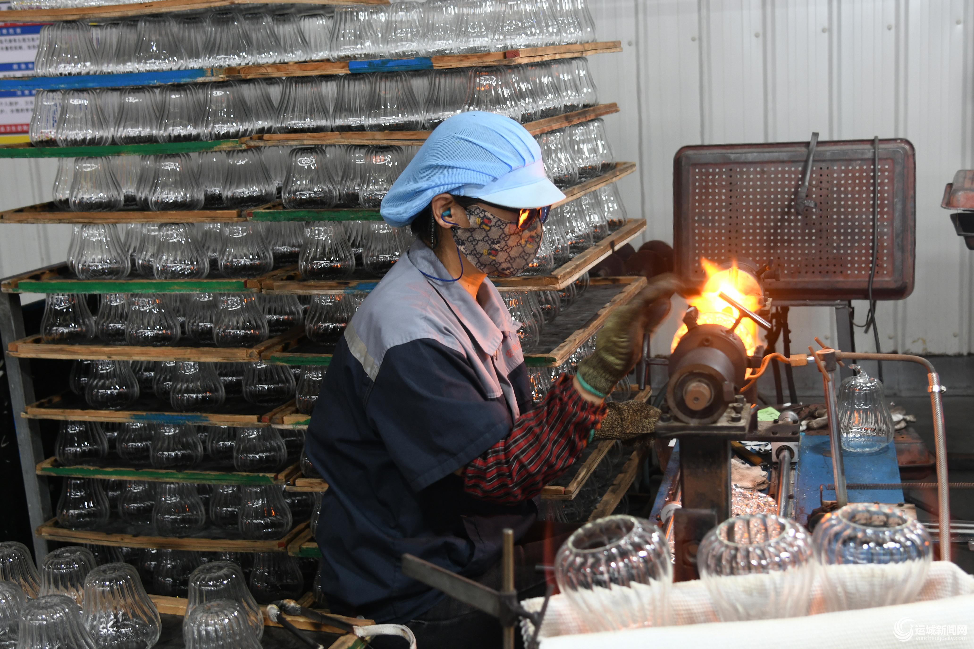 春节假期复工后,闻喜县宏伟玻璃器皿有限公司技术工人正加紧生产玻璃器皿,全力冲刺首季“开门红”(2月25日摄)。