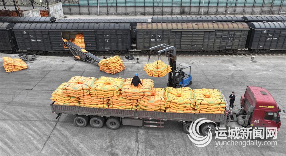 日前,工人在位于稷山县的山西潞安化工丰喜泉稷能源有限公司铁路专用线上装运化肥。