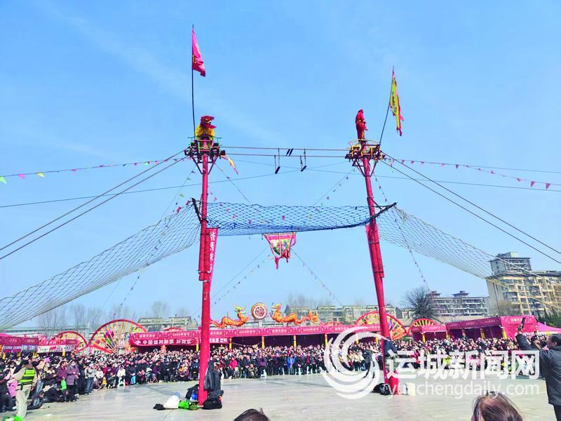 正月十五,永济舜帝山广场人山人海,锣鼓喧天。各类精彩演出轮番登场,土乐高空飞狮更是独树一帜,引人瞩目。