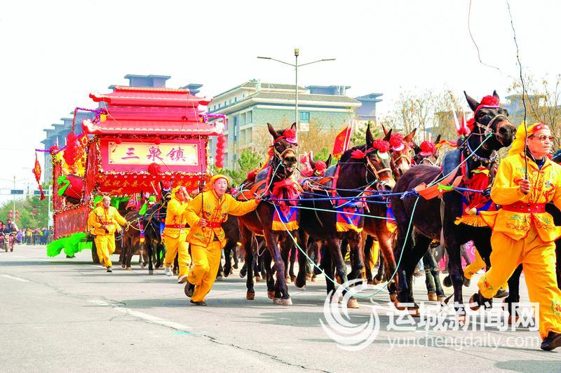 随后,三泉、万安、泽掌三镇特色社火方阵依次登场。