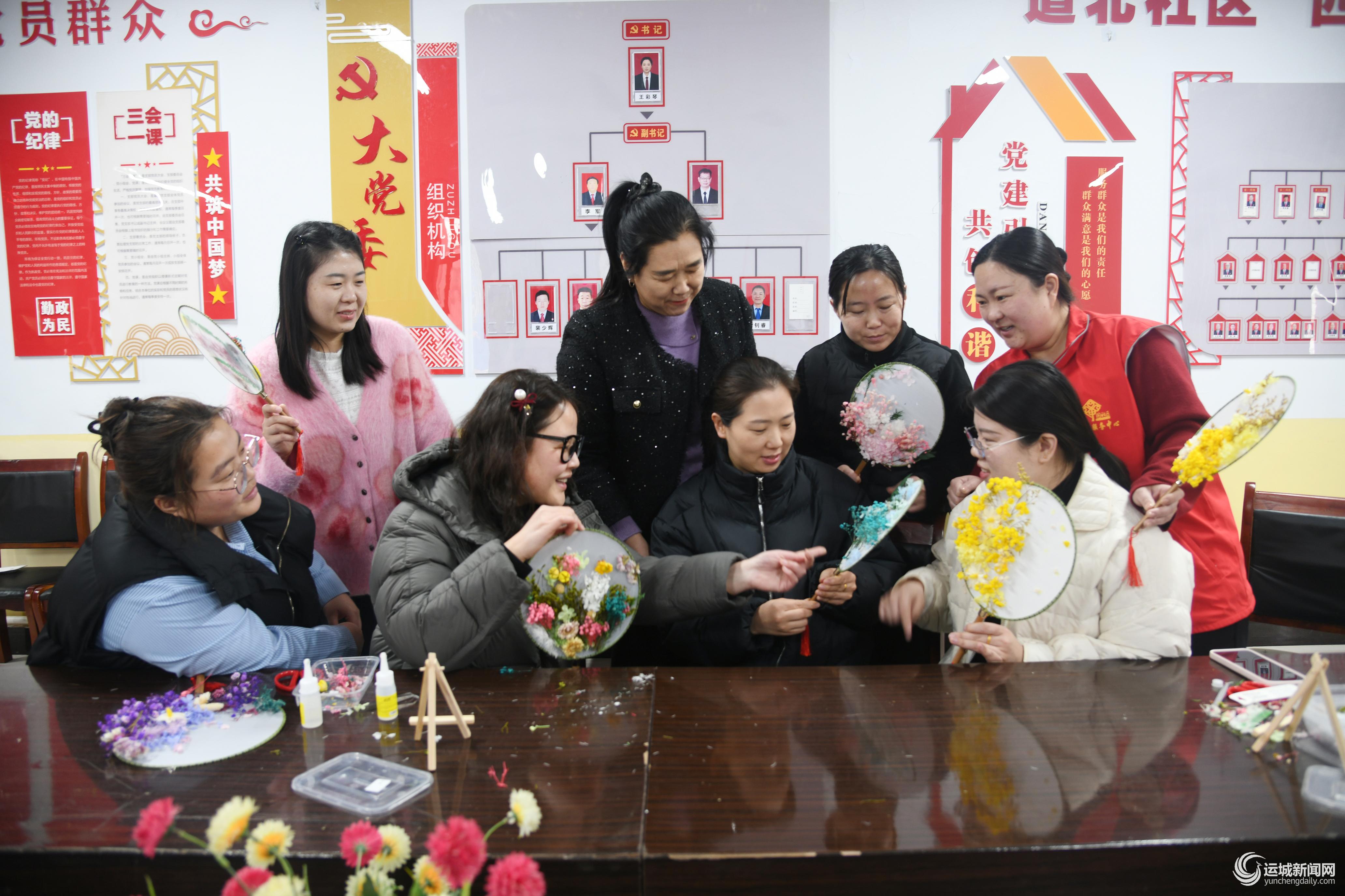 日前,闻喜县道北社区举办“三八”国际劳动妇女节活动。女性居民在制作扇子,丰富文化生活。 特约摄影 王彩琴 温徐旺 摄影报道