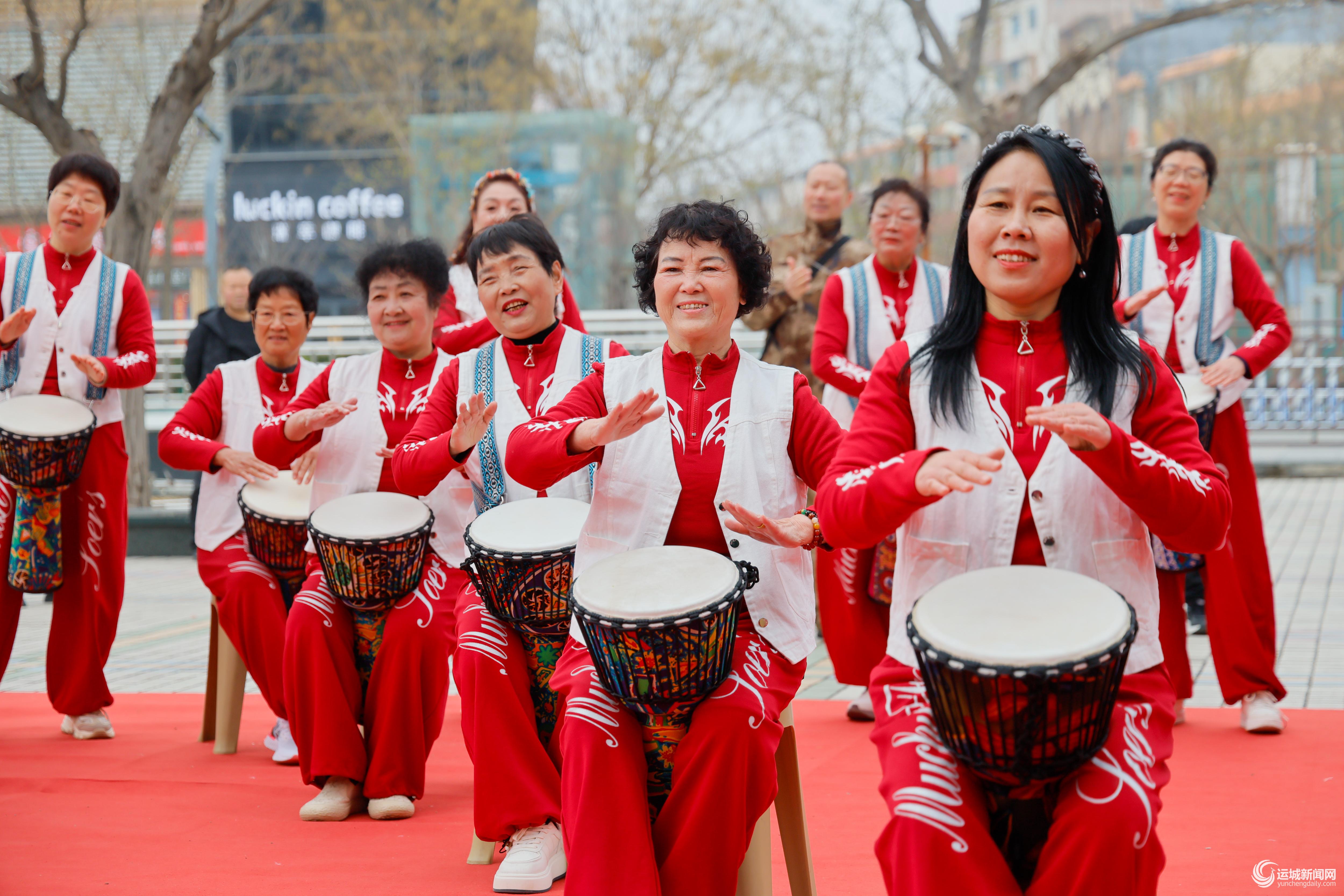 3月8日,市中心城区南风广场大家唱团队在表演非洲鼓,欢庆“三八”国际劳动妇女节。 本报记者 闫 鑫 摄
