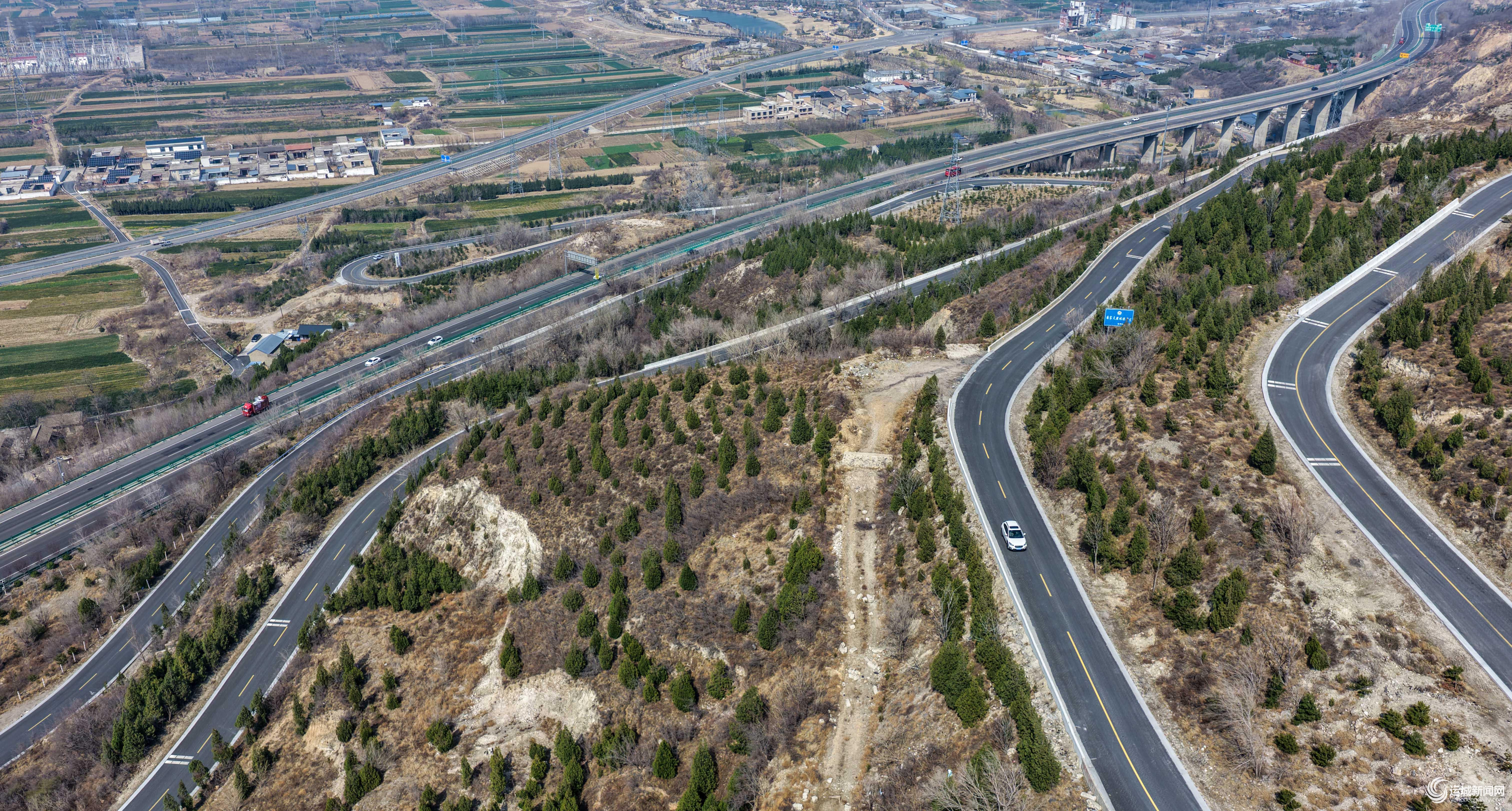 盐湖区解州镇境内高速公路、国省干道纵横交错,车辆来往穿梭(3月8日摄)。