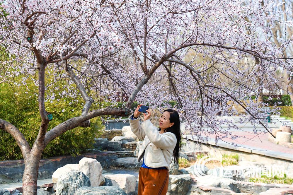 3月9日,市民在中心城区航天公园赏花游玩。
