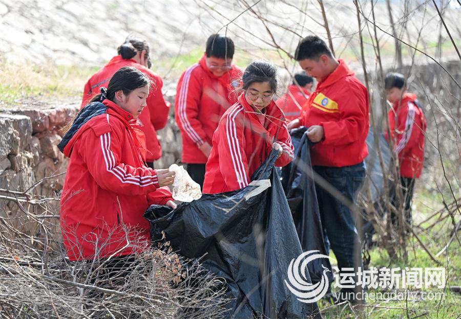 3月10日,永济市蒲州中心校的“小小志愿者”在蒲州镇黄河滩涂清理垃圾和废弃物。当日,共青团永济市委联合蒲州中心校组织100余名师生志愿者来到黄河滩涂,开展“传承雷锋精神保护母亲河”净滩活动,志愿者带着铁夹子、垃圾袋在黄河滩涂捡拾塑料袋、快餐盒、饮料罐等垃圾,以实际行动保护母亲河的清洁美丽。