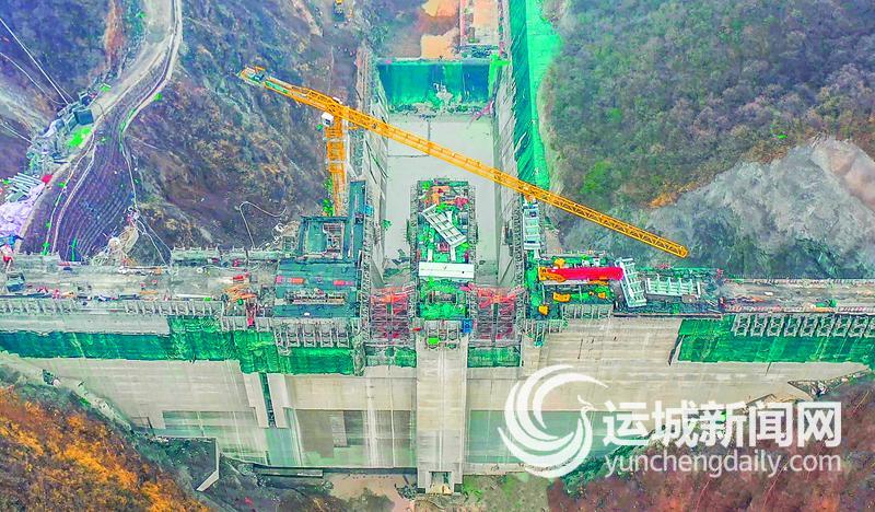 3月13日,国网新源山西垣曲抽水蓄能电站下水库大坝加紧施工。