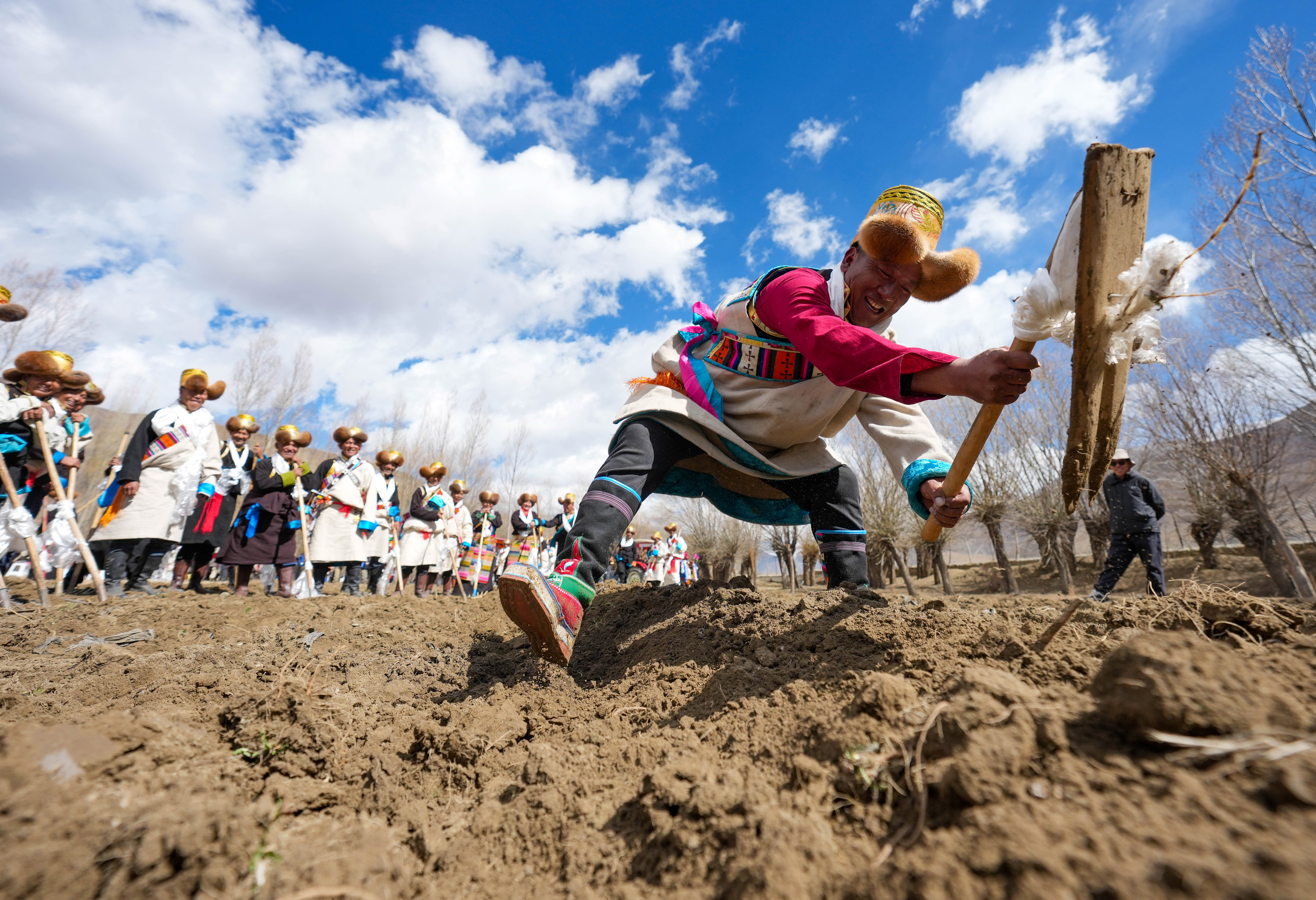 3月16日,西藏各地农区举行春耕大典。在山南市结巴乡结巴村,200多位村民身着盛装,按照传承千年的春耕民俗,举行春耕仪式。