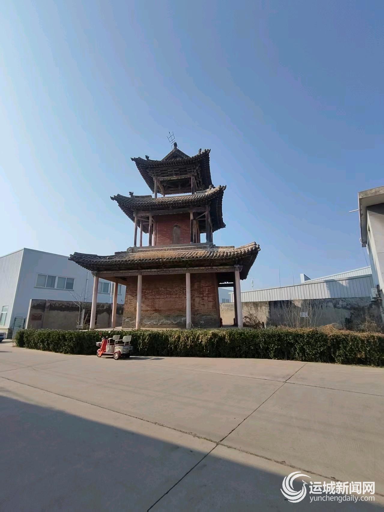 木阶在脚下轻响,如岁月的低语。楼共三层,斗拱层叠似云涌,檐角铁铃随风清鸣,音色穿过浮尘,空灵如古谣。凭栏远眺,天地顿阔:东望涑水如银带迤逦,南眺中条山色如黛,西见稷峰孤秀接天。两条道路如双龙交汇,车流奔腾,尽是时代的律动。阡陌纵横,麦苗返青,风过平畴,恍若陶令诗中的田园悠然。