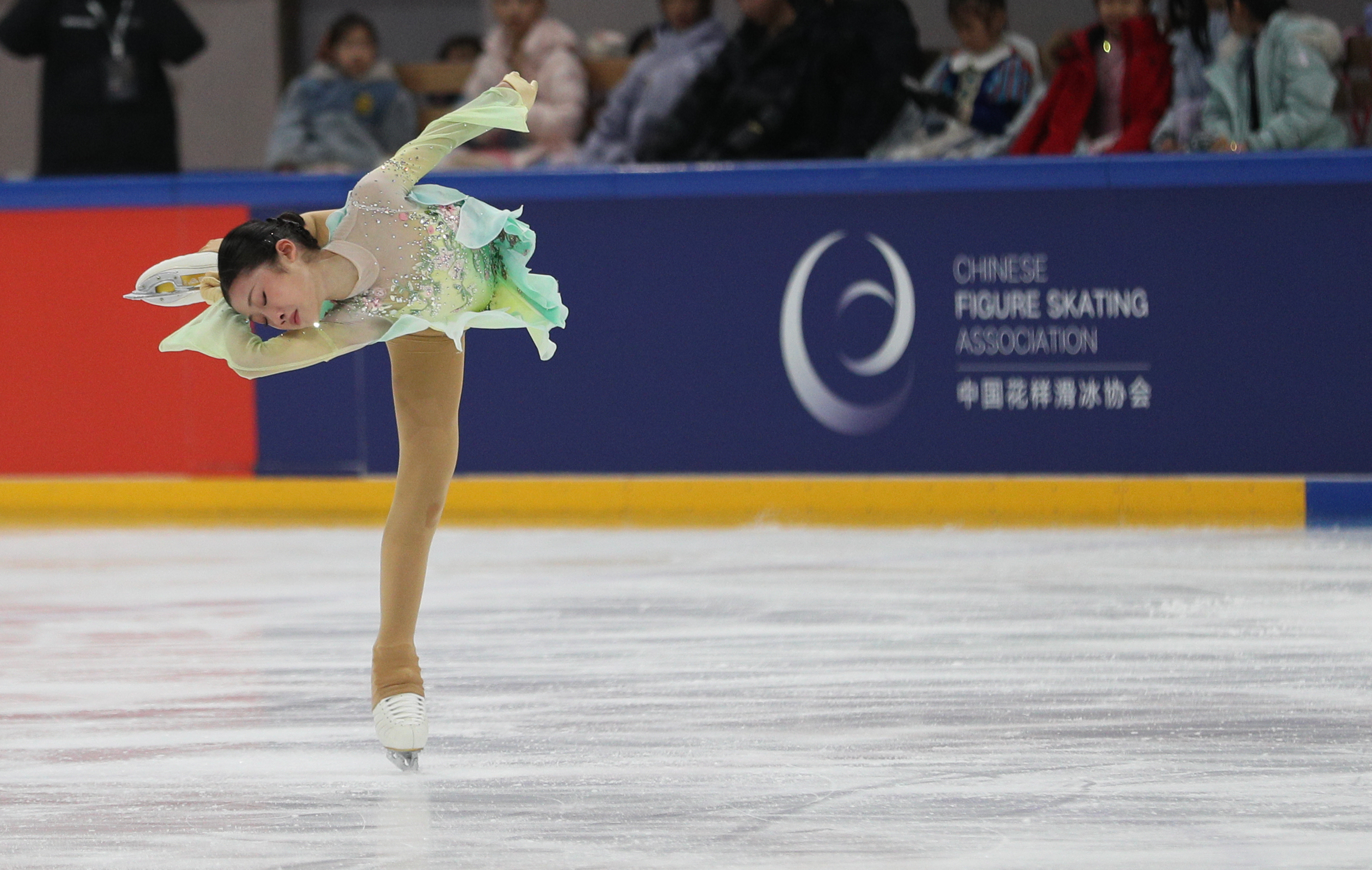 3月15日,北京世纪星滑冰俱乐部有限公司选手金辰熹在比赛中。她以总成绩198.71分获得亚军。