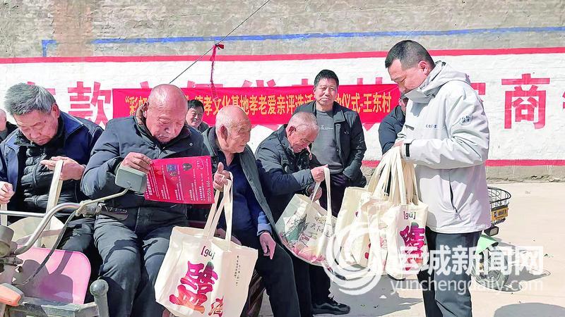 运城晚报讯(记者 杨洋)“这活动暖心又实在,不光讲孝老爱亲,还想着照顾我们老年人,大家都很开心。”在永济市栲栳镇王东村,领到礼品的老人脸上洋溢着笑容。3月20日,“彩虹情·盬酒杯”德孝文化基地孝老爱亲评选活动走进该村。
