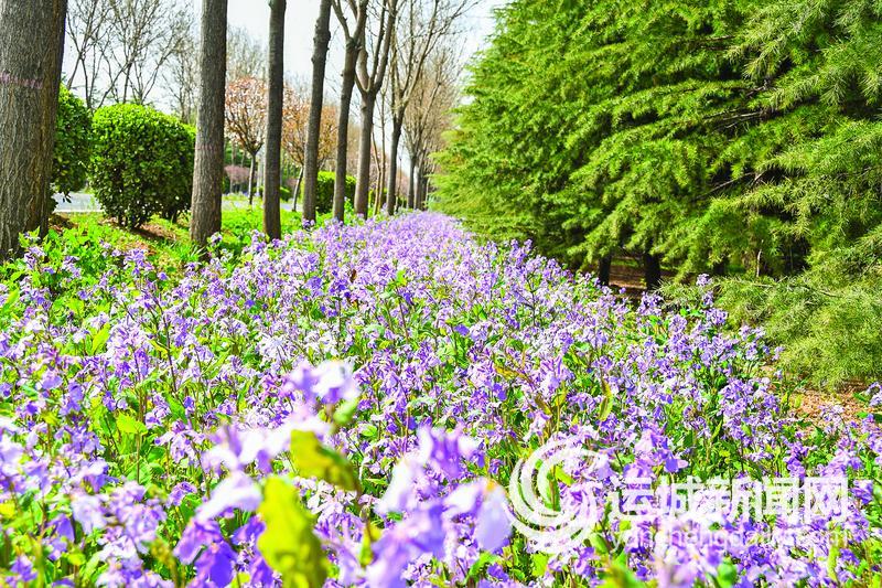 3月22日,黄河一号旅游公路万荣段路边,开得正艳的二月兰浓香扑鼻、美丽诱人。 特约摄影 徐应杰