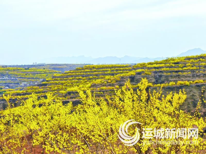 3月23日,绛县南樊镇沸泉村及周边村落万亩连翘花竞相绽放,漫山金黄连成层层花海,蔚为壮观。 记者 杨洋 摄