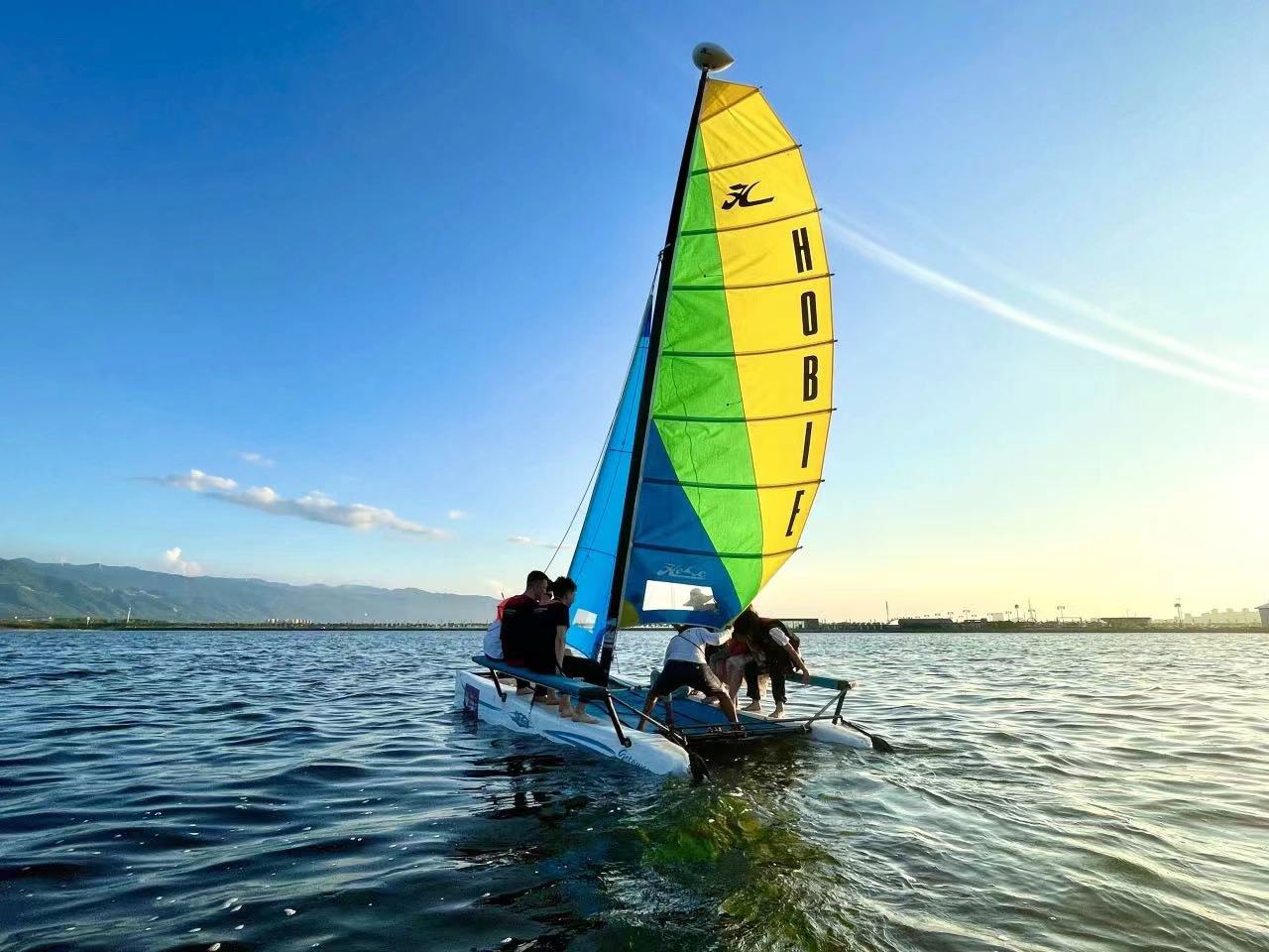 目前,景区还积极打造了帆船项目,空中热气球和直升机项目,让游客体验盐湖七彩景象。