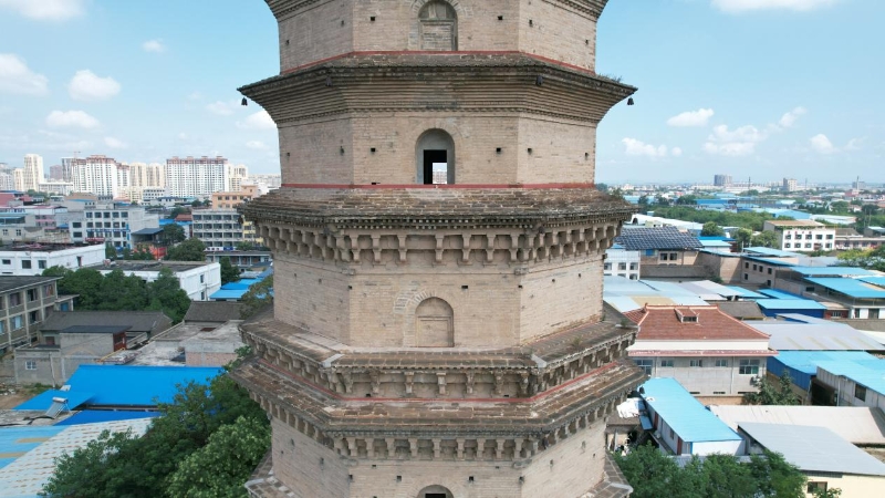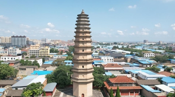 太平兴国寺塔位于盐湖区安邑街道办事处北街。原为太平兴国寺内存塔,现寺已被毁,仅存塔1座,坐北朝南,八角十一层楼阁式砖塔,通高59米,建于宋嘉祐八年(1063)。塔基平面八角形,边长11.4米,占地面积129.96平方米,台基高1.5米。塔身砖砌,一层四面辟门,南门通塔室,塔内为八角空筒形结构。塔外壁一至四层塔檐设仿木构砖雕斗拱,五层以上叠涩出檐。塔壁嵌民国三十年(1941)维修塔基碣1方。2013年由国务院公布为第七批全国重点文物保护单位。