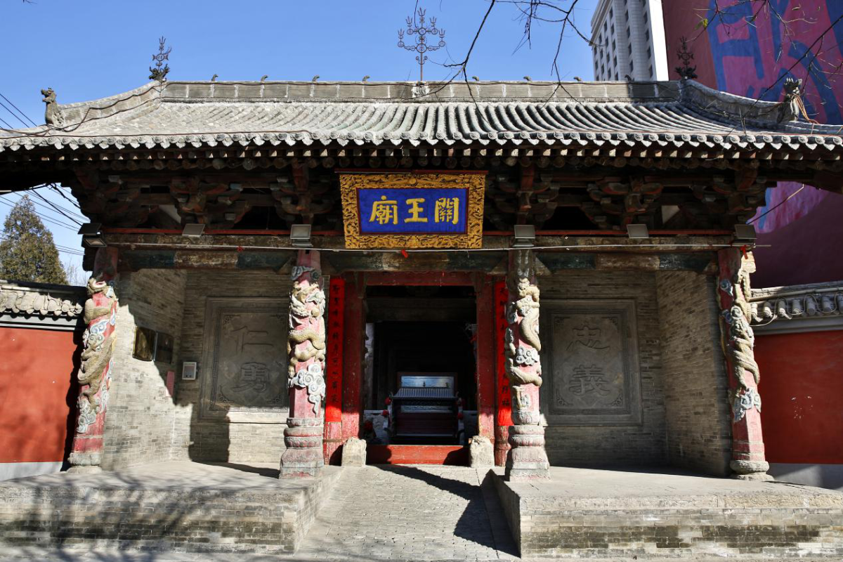 运城关王庙位于盐湖区中城红旗西街61号,创建于元代,后历代均有修葺。现存建筑整体布局坐东朝西,为明万历重建之遗构,现仅有中轴线上的山门、献殿、正殿等主要建筑。东西长64.6米,南北宽31.8米,占地面积近2100平方米。