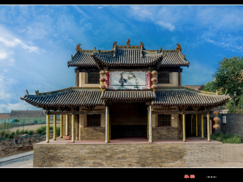 创建于明洪武年间(公元1368—1398年),是一座两层的楼阁式建筑,上下两层都可以演戏。据记载,上层耍皮影,下层唱大戏,人们坐在乐楼北侧的石板坡上看戏,体现了当时古人对地形地势的巧妙利用。