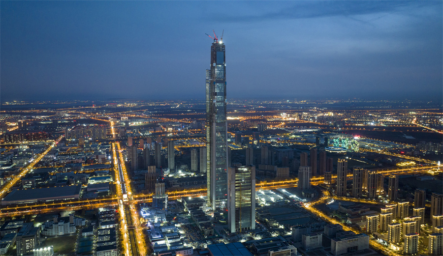3月28日,伴随重约7.6吨的菱形钢结构部件升到约596米高的楼顶,天津“117项目”的“钻石顶”的首个钢结构部件吊装成功,标志着该项目进入塔冠钢结构全面施工阶段。