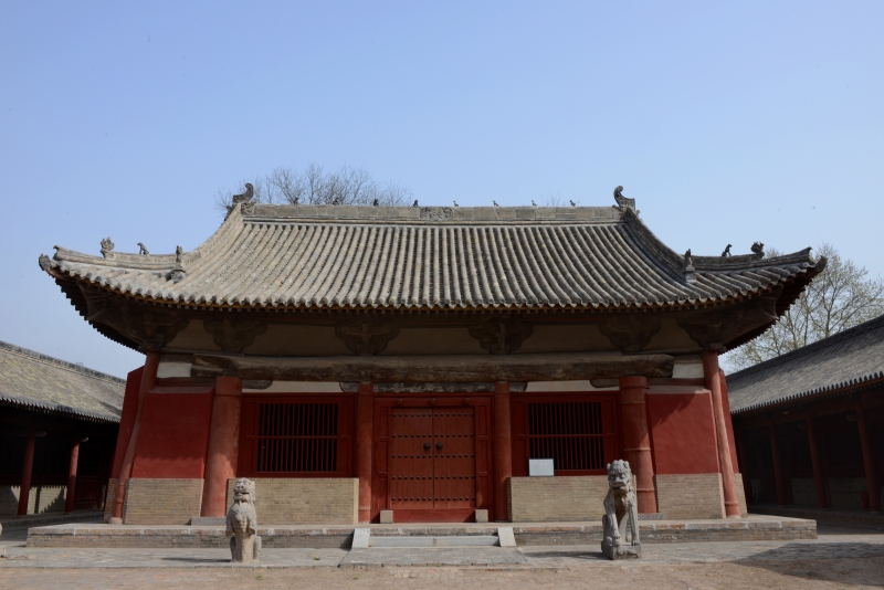 石牌坊—保护碑—山门—享厅—献殿—大殿—寝殿—石刻