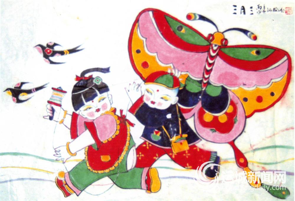 三是传递着友情与爱情。清明时节,河东大地到处充满生机。男女老幼,尤其是向来不出户的乡间姐妹,在这个时节也纷纷走出户外,踏青赏花至野外,沉浸在大自然的怀抱中,借助放飞风筝,沟通交流,表达心愿,传递友谊与美好。同时,有情人终成眷属,正如元代著名戏曲家、河东人关汉卿笔下的《绯衣梦》,到河东传统民歌《姐妹踏青》,再到现代河东人新编的蒲剧传统戏《风筝缘》中,也充分体现了河东年轻人在清明时节以风筝为媒、传递爱情的真实写照。
