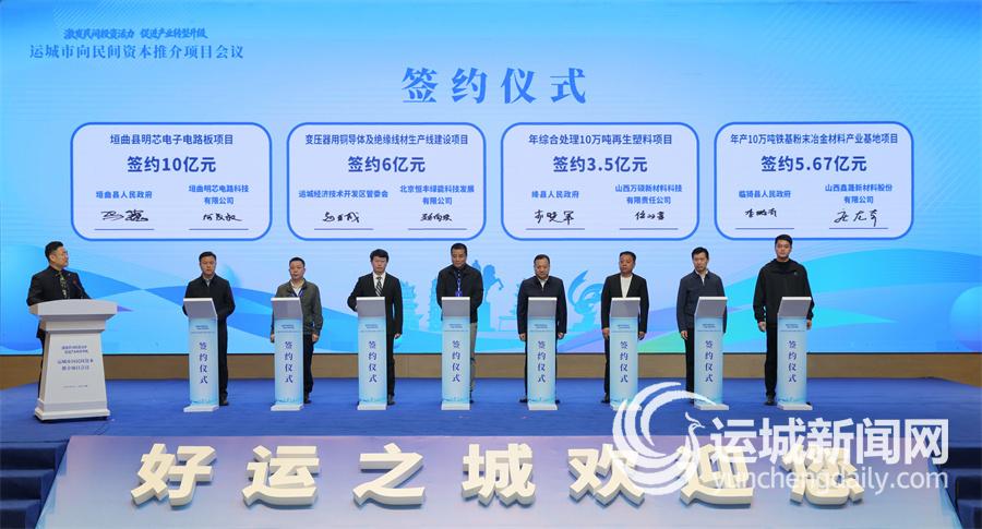 4月3日,运城市向民间资本推介项目会议召开。图为项目签约仪式现场。