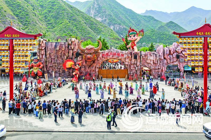 4月6日,永济市牛魔王逍遥谷景区人气旺盛、游客如织。游客沉浸式体验“牛魔王娶亲”民俗场景,观赏水上飞人表演,挑战高空飞锤项目,品尝特色美食,尽享清明假期乐趣。