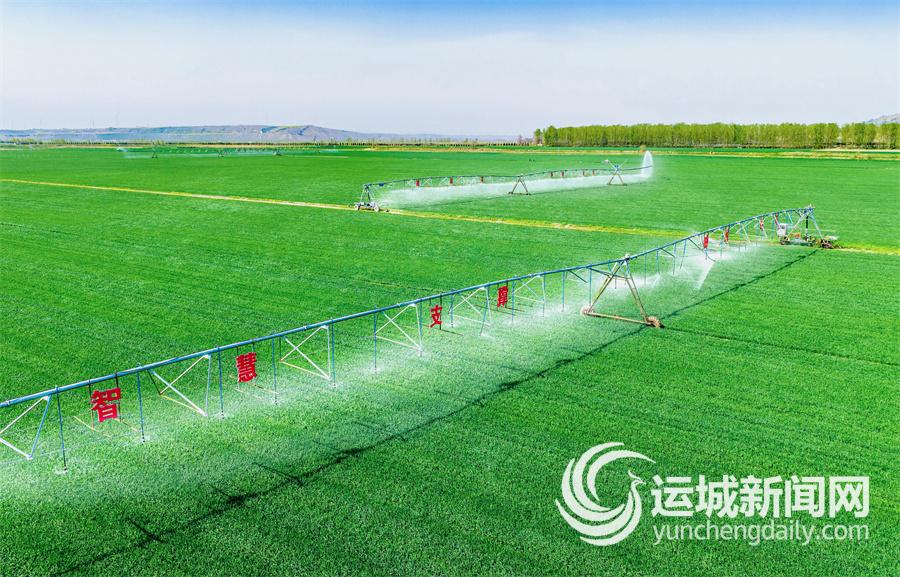 眼下,芮城县东垆乡黄河岸边万亩冬小麦迎来返青拔节关键期,农民利用全自动行走式喷灌设备对冬小麦进行春浇、施肥,为今年小麦增产增收打基础。