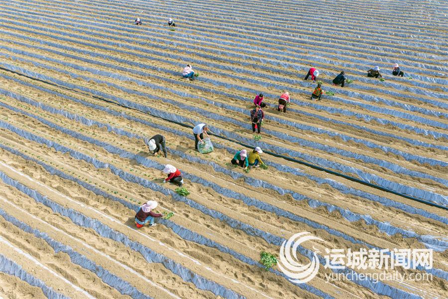 4月14日,在盐湖区王范乡王范村,村民抢抓四月农时黄金期,将一株株红薯秧苗栽种在整齐的田垄上,播下全年丰收满满的希望。