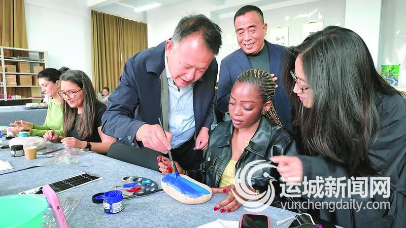 石头作画与书法体验课成为研学亮点。石头作画是垣曲特色民间艺术,教师结合垣曲地域文化,现场演示石头绘画与书法的创作技巧。欧洲青年们认真聆听讲解,动手在石头上绘制图案、练习汉字书写,交流创作心得,沉浸式感受中国书画的艺术魅力与传统文化底蕴。